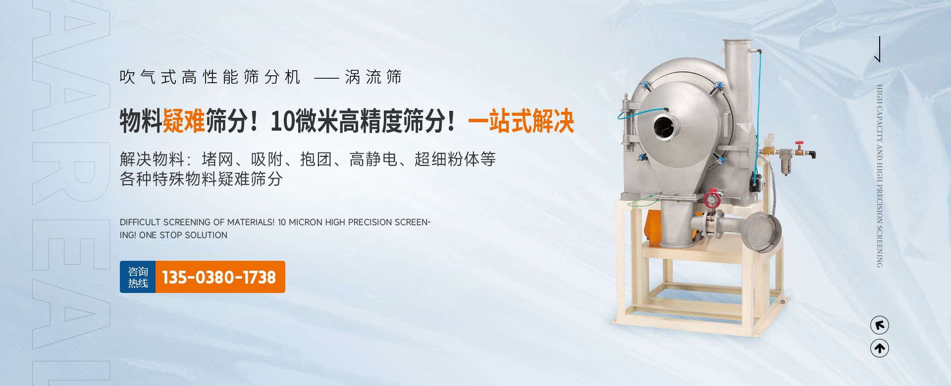 阿 瑞 爾(AAREAL)? 是從事篩分·過濾設備設計和制造的高新技術企業,擁有先進的生產設備、粉體篩分分析實驗室,在中國廣州市設辦事處。祝賀:新鄉市超大產能精細篩分技術工程中心在阿瑞爾(AAREAL)成立?。?!在線大產能篩分和在線動態過濾是阿 瑞 爾(AAREAL)?的產品特點■ 在線大產能篩分,突破了傳統篩分觀念,工業化篩分,實現大產能、高能效篩分。以低故障率、低停機率、低使用成本、高產能、高精度、高能效為您帶來巨大意外收益?!?阿瑞爾(AAREAL)擁有的回轉篩分技術,擁有的近百種篩分解決方案及上千種物料的篩分經驗,會給您展現全新的篩分設備,幫您實現大產能篩分 高精度篩分 疑難篩分?!?阿瑞爾(AAREAL)的品質保證:阿 瑞 爾(AAREAL)? 是高品質篩分設備制造商高品質是阿 瑞 爾(AAREAL)? 質量準則。優品設備 合理篩分是阿 瑞 爾(AAREAL)?回報客戶的驗收標準。——我們不但擁有先進的生產設備,而且對于每一道工序,每一個細節,我們都要精工細作。對于客戶的每一個細微的問題,我們都要認真解決?!闹谱骱陀眯姆帐俏覀儗蛻舻呢熑巍0⑷馉枺ˋAREAL)是您成功道路上值得信賴的、合作伙伴,以良好的質量、經驗和服務享譽多個國家,確保您安心地選擇每一件產品,阿瑞爾(AAREAL)竭誠與國內外商家雙贏合作,共同發展,共創輝煌!阿瑞爾(AAREAL)——您正確的選擇。